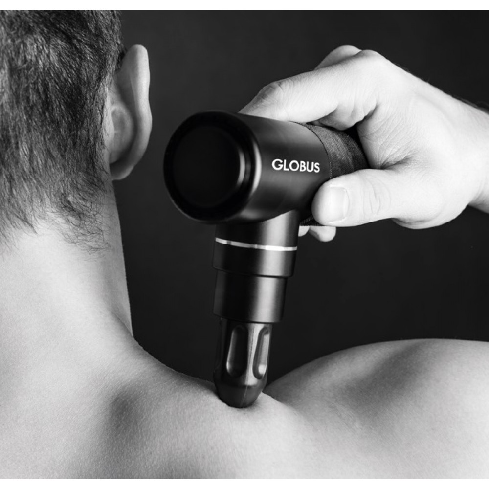 Globus Vibe Massage Gun è una pistola massaggi a 4 velocità in alluminio con testine che assicurano massima efficacia su diverse parti del corpo.